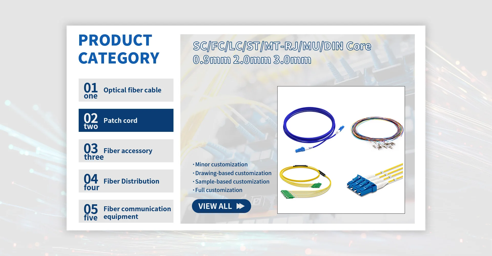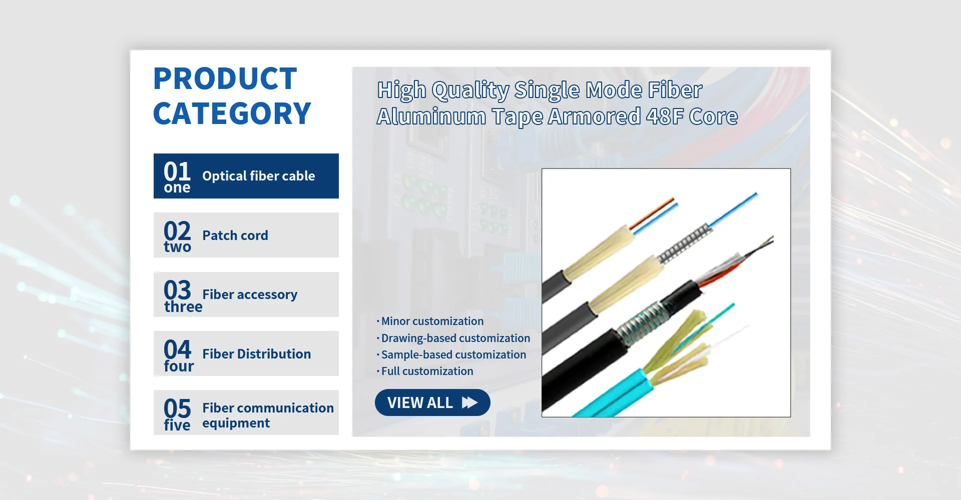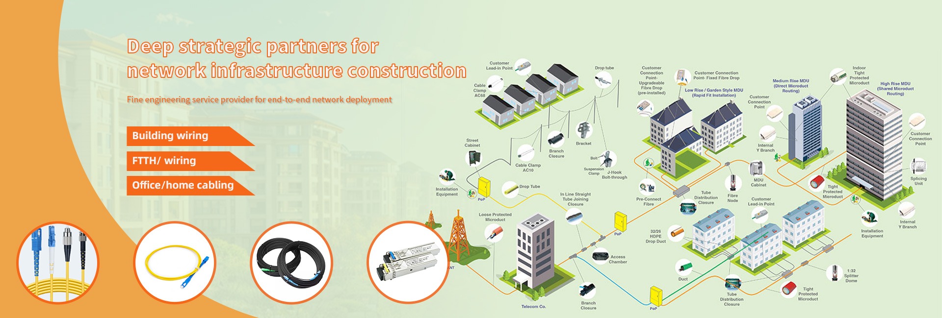 Prodotti principali: FTTH cavo a goccia, cavo in fibra esterna, cavo in fibra interna, separatore PLC, cavo Patch in fibra