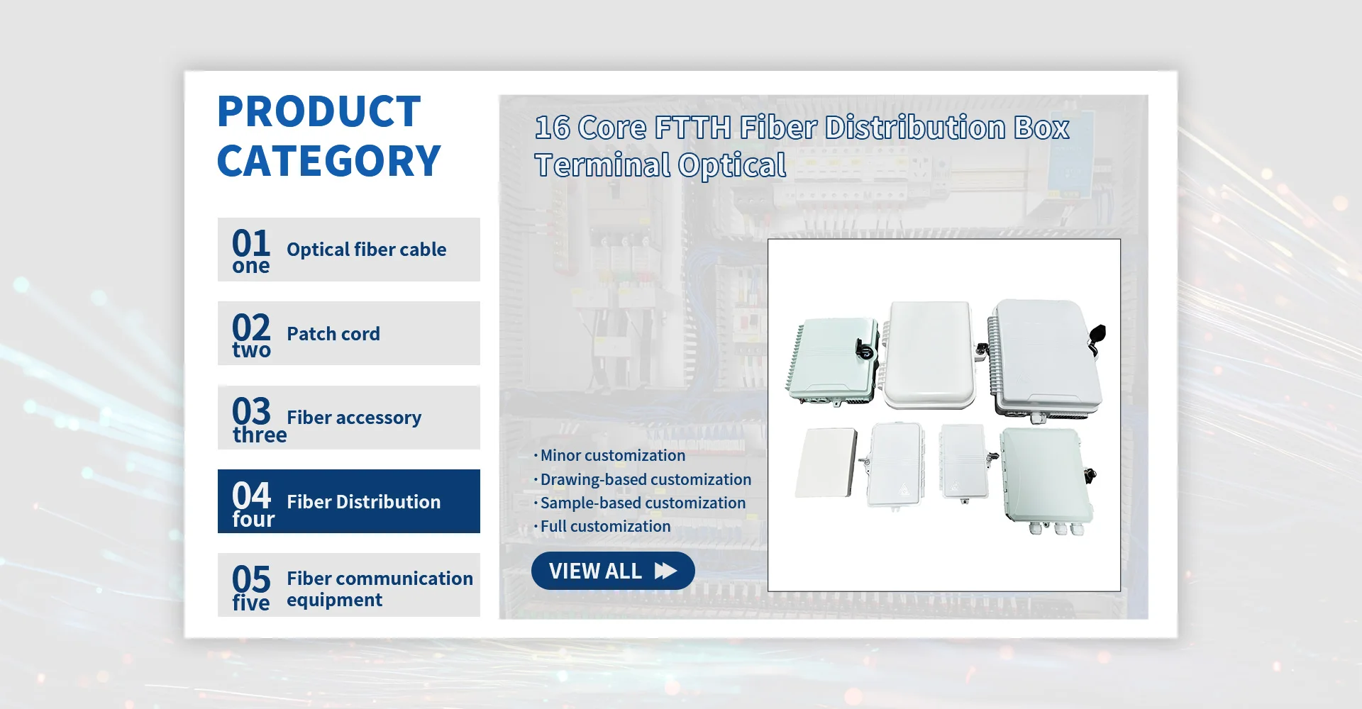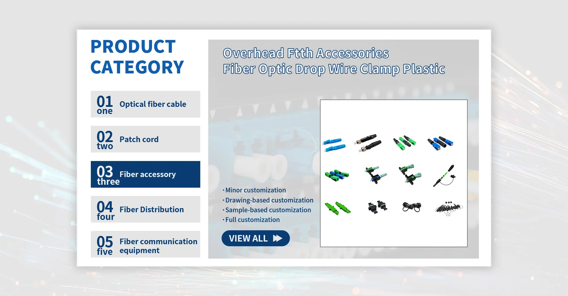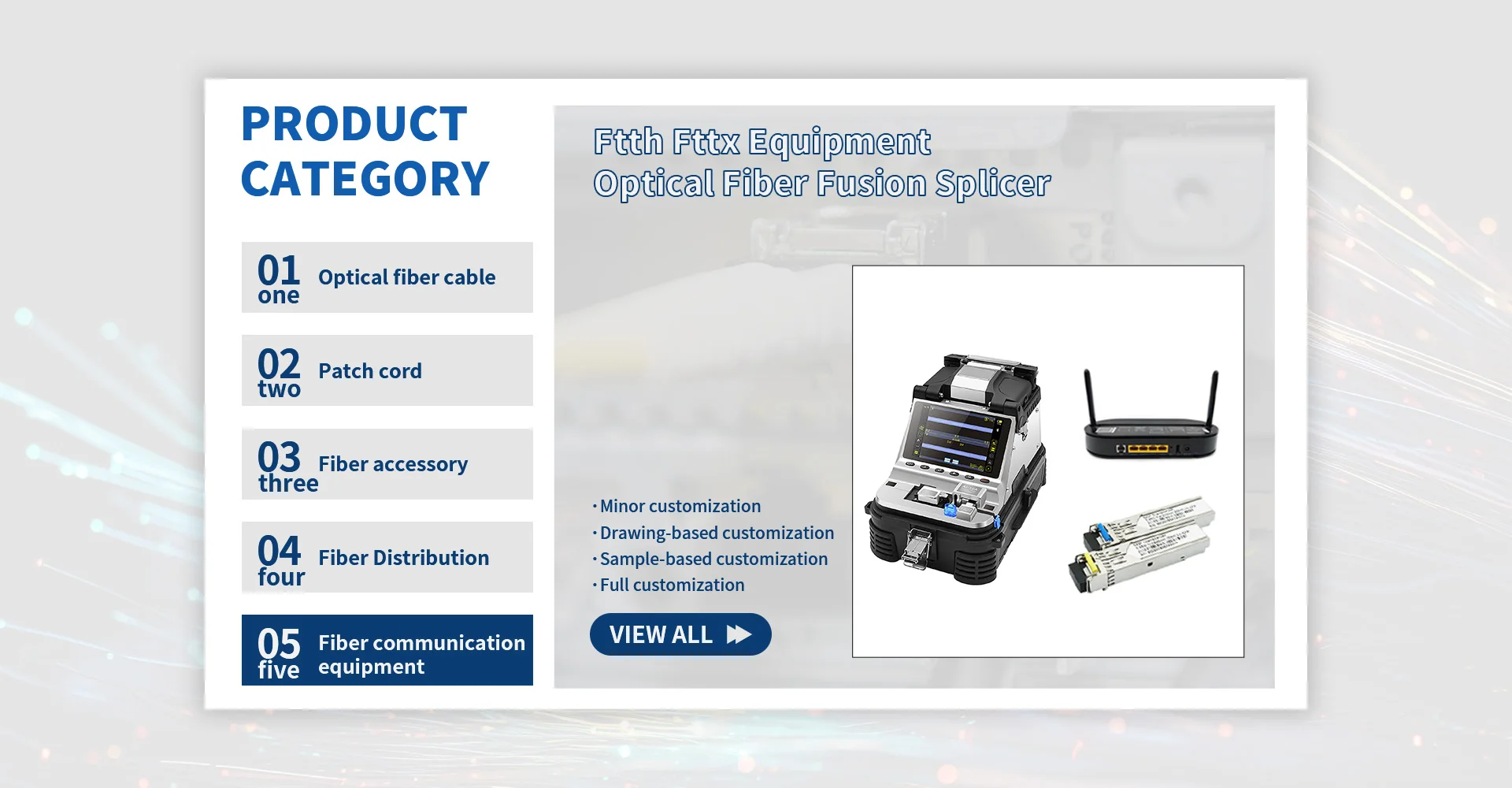 Prodotti principali: FTTH cavo a goccia, cavo in fibra esterna, cavo in fibra interna, separatore PLC, cavo Patch in fibra