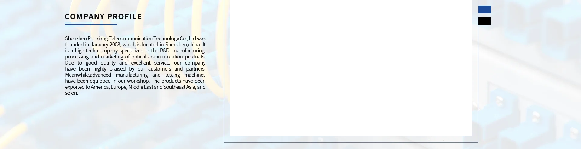 #3 Produttore di riferimento in TelecomunicazioniAnnual sales US $12,000,000Patents awarded (1)Full customizationFinished product inspection